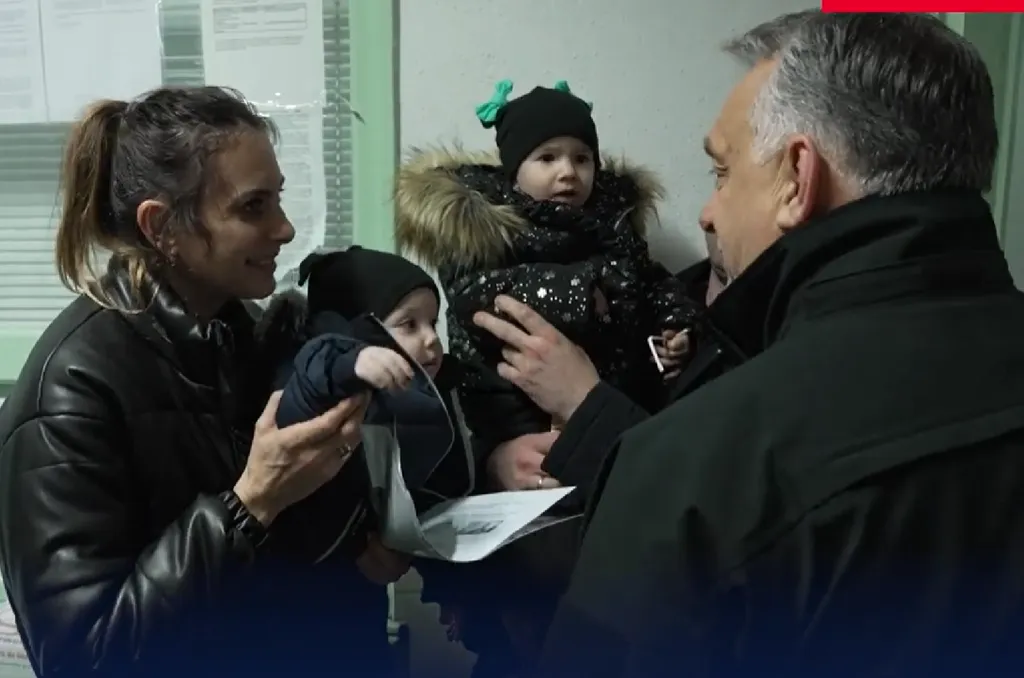 Ideiglenes tartózkodásra jogosító igazolást adott át Orbán Viktor miniszterelnök Csengersimán egy Ukrajnából menekült családnak.