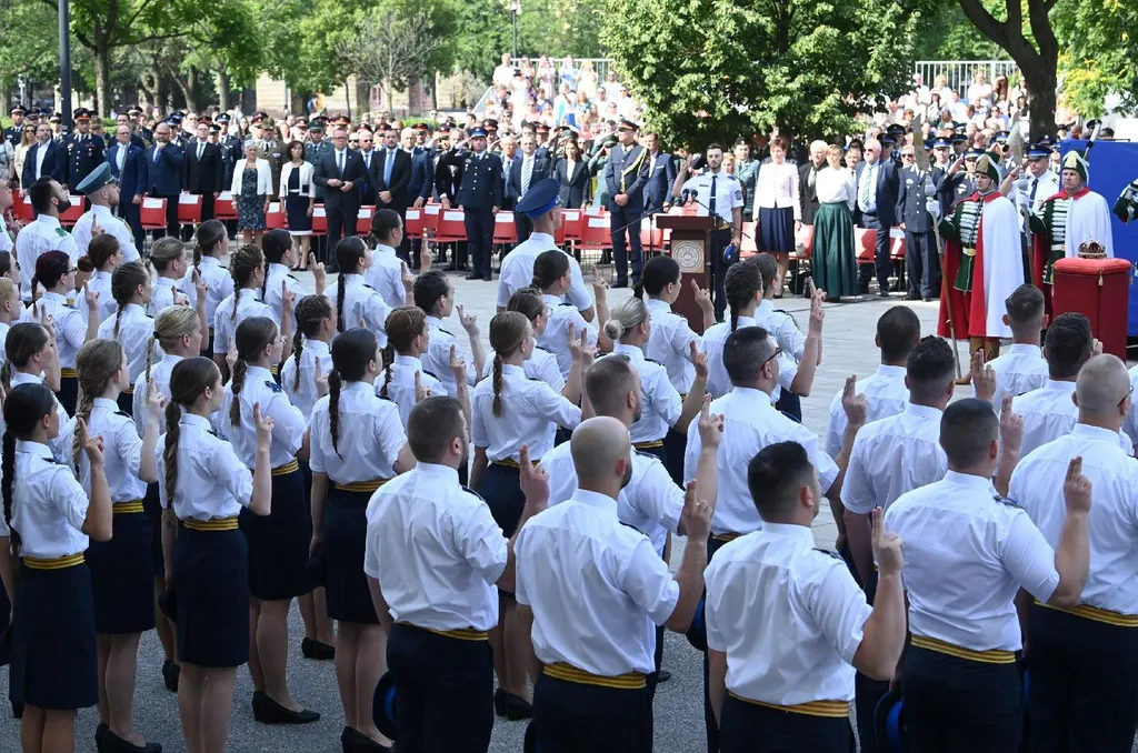 Hangsúlyozta: aki a felelősségteljes életet, a tiszti hivatást vállalja, az a magyarságát is vállalja. Esküjük szerint a most végzettek a magyar embereket védik, a magyar nemzet békéjét és biztonságát szolgálják, vállalják, hogy nehéz időkben is erősek maradnak, megvédik a gyengéket és az elesetteket, megfékezik mindazokat, akik Magyarország békéjét és biztonságát fenyegetik - sorolta.