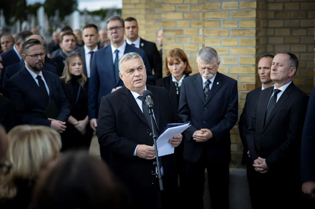 "Nomen est omen, mint pásztorát vesztett nyáj, úgy állunk most itt, lehajtott fejjel és nehéz szívvel, szerbek és magyarok, anyaországi és külhoni magyarok" - mondta Orbán Viktor a szabadkai Bajai úti temetőben tartott gyászszertartáson, hangsúlyozva: Aleksandar Vucic szerb államfővel közösen búcsúznak a vajdasági magyar politikustól.