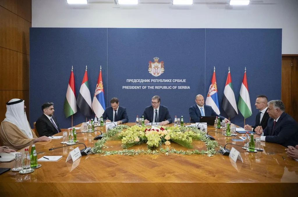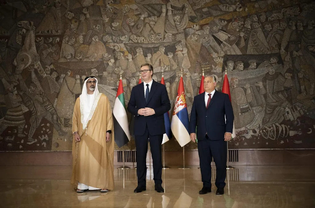 Orbán Viktor és Aleksandar Vucic Hálid bin Mohamed bin Zájed Ál Nahajan sejkkel, az Egyesült Arab Emírségek trónörökösével folytatott megbeszélést. Ezzel kapcsolatban a miniszterelnök elmondta: a háromoldalú csúcstalálkozón az volt a cél, hogy bemutassák a szerb-magyar gazdasági együttműködést az emírségek képviselőjének. A megbeszélés módot adott a lehetőségek feltérképezésére, az infrastruktúra és a kereskedelem terén folytatott együttműködés megismertetésére. Hozzátette: Magyarországnak most először volt alkalma részt venni ilyen találkozón.