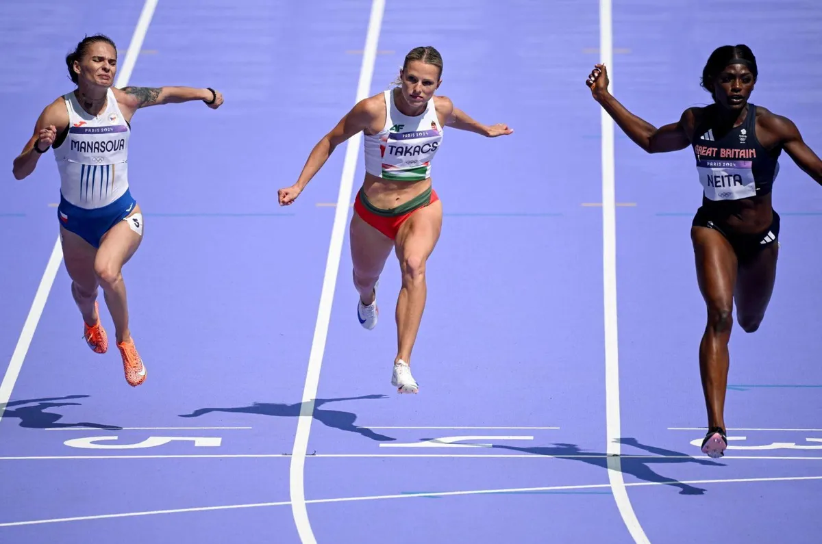 Takács kissé lassabban rajtolt, mint vetélytársai, de gyorsan lábra kapott, a hajrája nagyszerűen sikerült, a célba pedig úgy dobta be magát, hogy egy századdal előzte meg a mellette futó cseh Karolina Manasovát. Ez pedig a harmadik helyet, azaz az olimpiai elődöntőt jelentette a magyar atléta számára, egyben éppen egy századdal döntötte meg saját országos rekordját (11.10 mp).