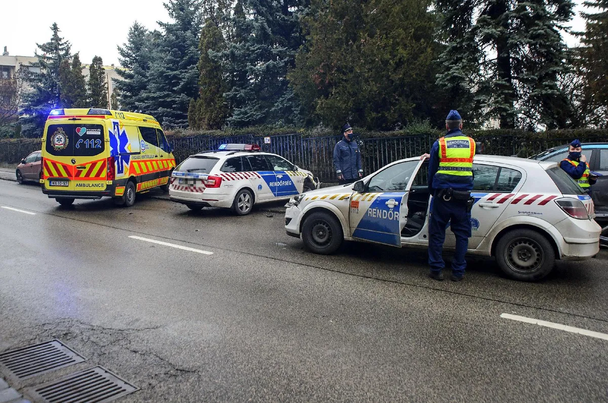 Az MTI helyszínről származó információi szerint a két rendőrautó megkülönböztető jelzést használt, amikor a baleset bekövetkezett.