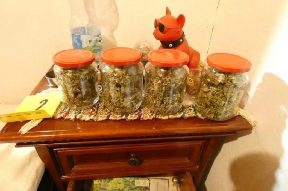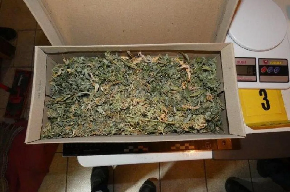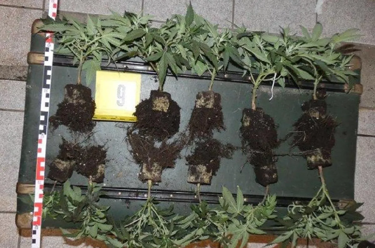 Az ingatlan hátsó, külön erre a célra kialakított melléképületében a nyomozók dohányőrlőt, egy cipős dobozban 272 gramm, négy dunsztos üvegben 1323 gramm, valamint egy műanyag vödörben 41 gramm növényi törmeléket találtak. A házi ültetvény 12 tőből állt, de akadt még egyéb lefoglalni való is: egy dobozban 17,88 gramm mag, illetve a kábítószer termesztéshez használt eszközök, digitális mérleg is.