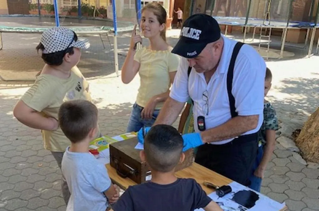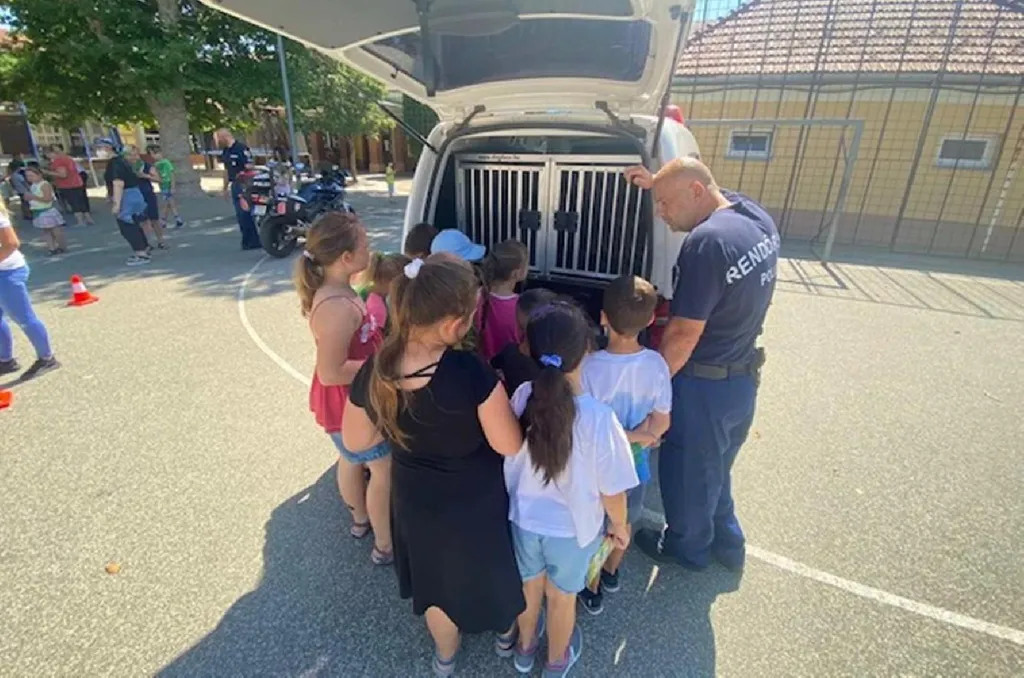 A Kiskunmajsai Rendőrőrs körzetti megbízottja, nyomozója, kutyás járőrvezetője és az iskolaőrei a Szent Gellért Katolikus Általános Iskolában megrendezett Erzsébet táborba látogattak szerda délelőtt. A 60 fős gyerekseregnek lehetőségük nyílt betekinteni az egyenruhások munkájába, szemügyre vehették közelebbről a különböző technikai eszközöket, és az egyenruhások segítségével ki is próbálhatták azokat. A nap folyamán hasznos bűn- és balesetmegelőzési ismereteket szerezhettek kicsik és nagyok egyaránt.