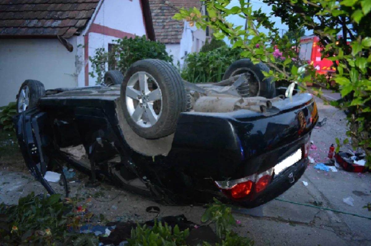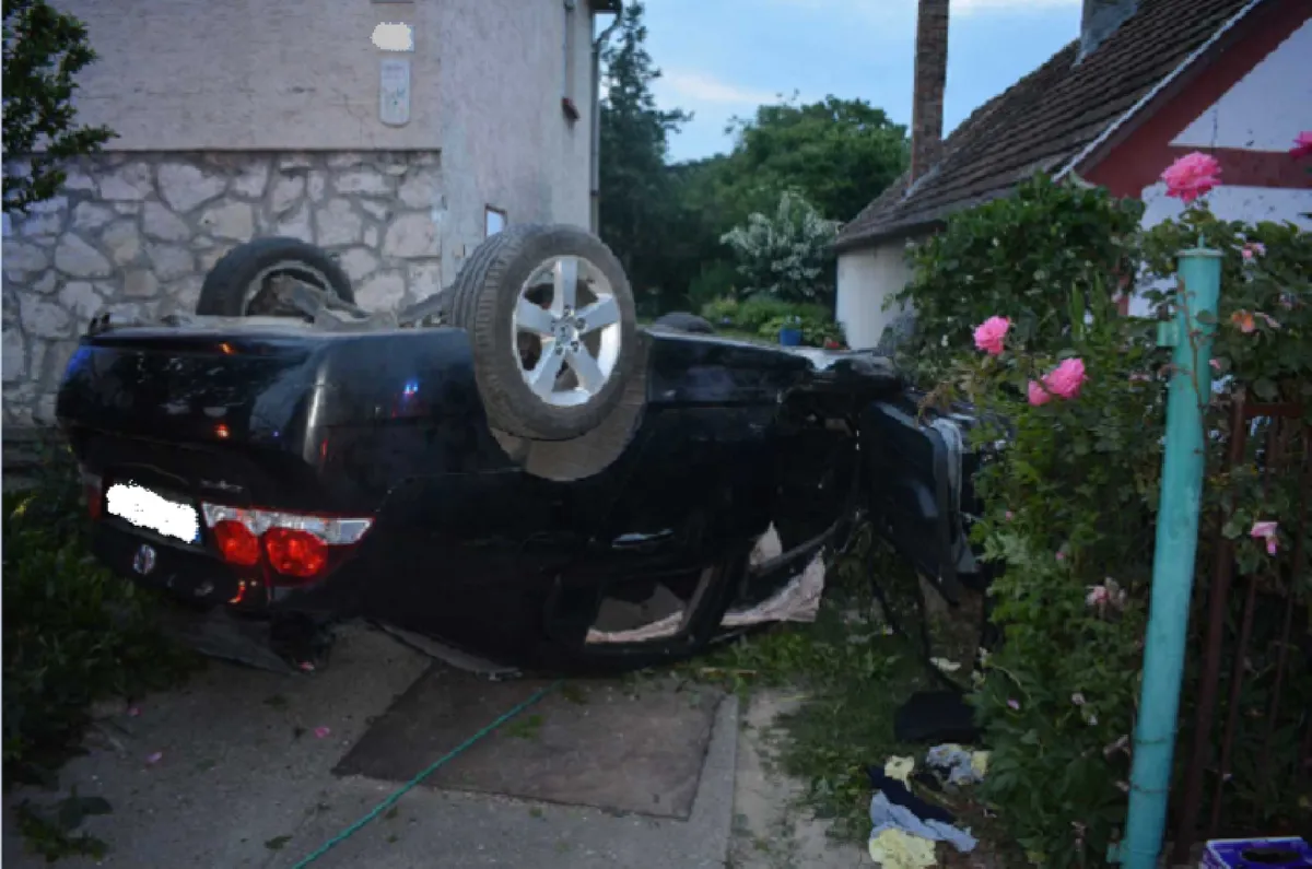 Egy nyergesújfalui férfi szombaton 19 óra 55 perc körül kocsival és két utasával közlekedett Neszmélyen. Sebességét nem az út vonalvezetésének megfelelően választotta meg, emiatt az egyik ingatlan kerítésének, majd a kapubejárón keresztül egy másik épületnek ütközött, ahol az udvaron felborulva állt meg. A baleset során mind a hárman súlyosan megsérültek – közölte a rendőrség.
