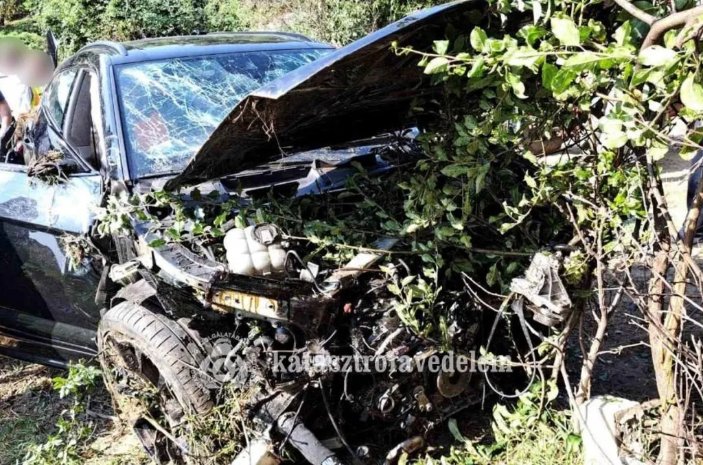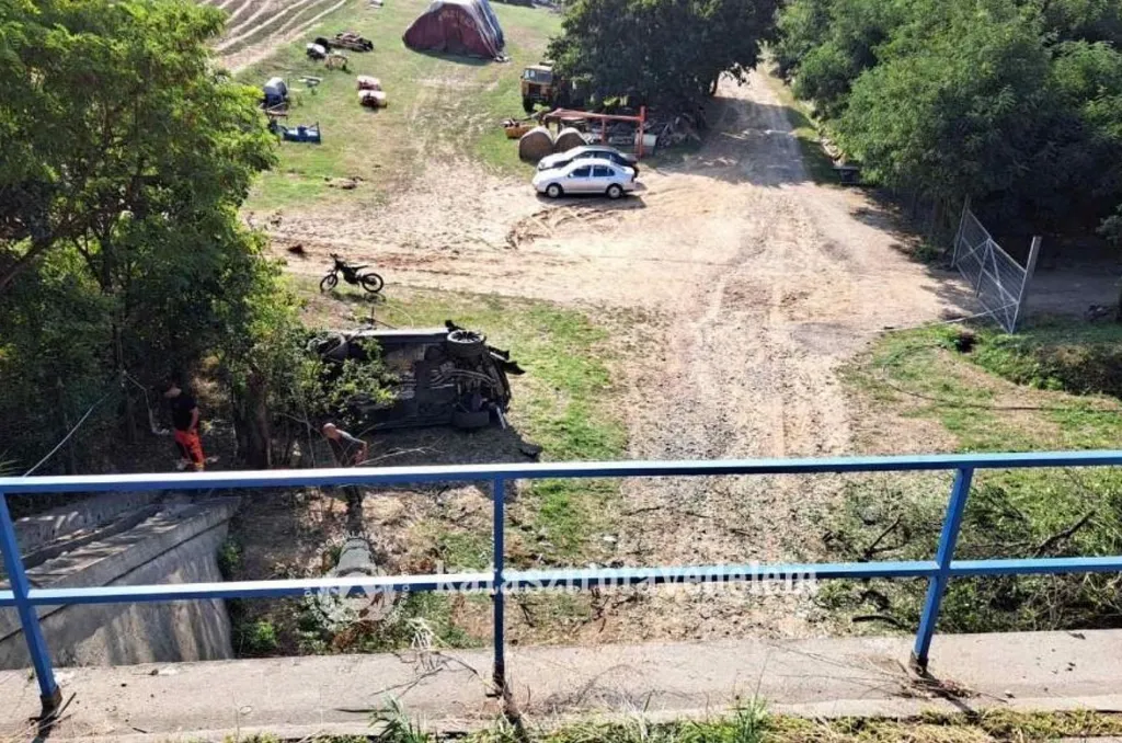 Az autó berepült egy lovastanya területére, nyolc métert zuhant, és a töltés oldalára csapódott, ahol az oldalára borult. Szinte hihetetlen, hogy a sofőr saját lábán tudta elhagyni a roncsot.