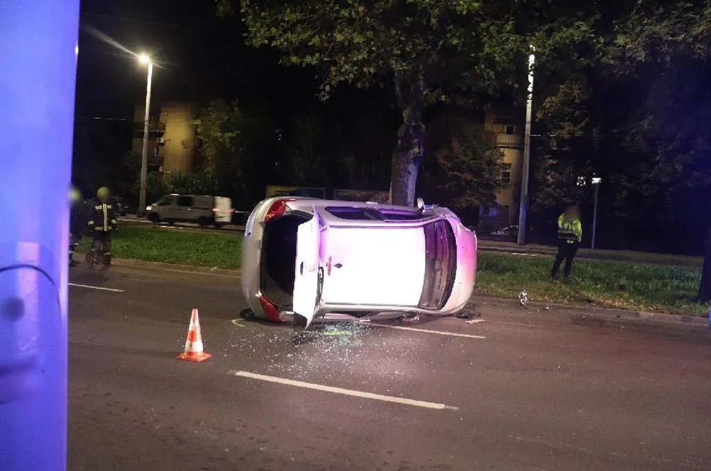 Az autós nem sokkal később már a XIV. kerületi Hungária körúton járt, amikor a belső sávban nekiment a padkának, majd az út melletti füves területre felhajtva kidöntött egy közlekedési táblákat tartó oszlopot, végül az oldalára borulva az úttesten állt meg. A járművet vezető R. Tamást a mentők súlyos, életveszélyes állapotban vitték kórházba. Az alkoholszonda pozitív értéket mutatott.