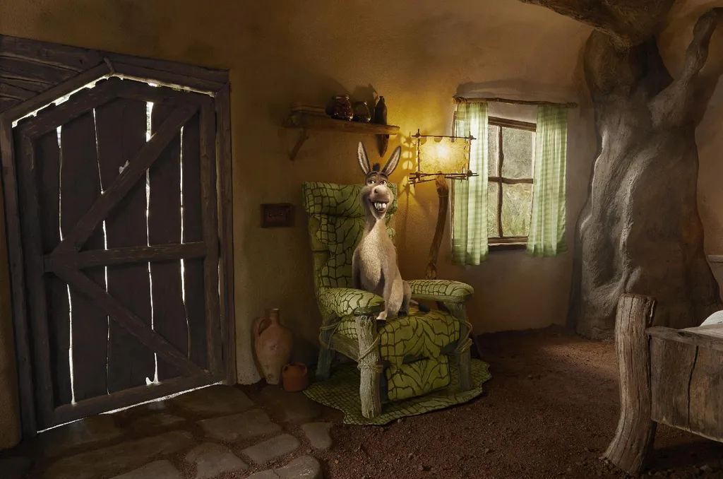 Idén Halloweenkor a Shrek című animációs filmből jól ismert Szamár kiteszi az „üdvözöllek” feliratú szőnyeget az ikonikus mocsári kunyhó elé, ugyanis bárki foglalhat két éjszakát az Airbnb skóciai szállásán. A hirdetés szerint a vendégek tábortűz köré gyűlhetnek, történeteket mesélhetnek, pihenhetnek a „fülzsír gyertya” fényében és reggelire még Szamár-féle gofrit is ehetnek. A szállás a filmből már jól ismert kunyhó tökéletes mása, a hirdetésben pedig még arra is felhívták a jelentkezők figyelmét, hogy a mosdó – mint ahogy azt a rajongók jól tudják – a házon kívül található.