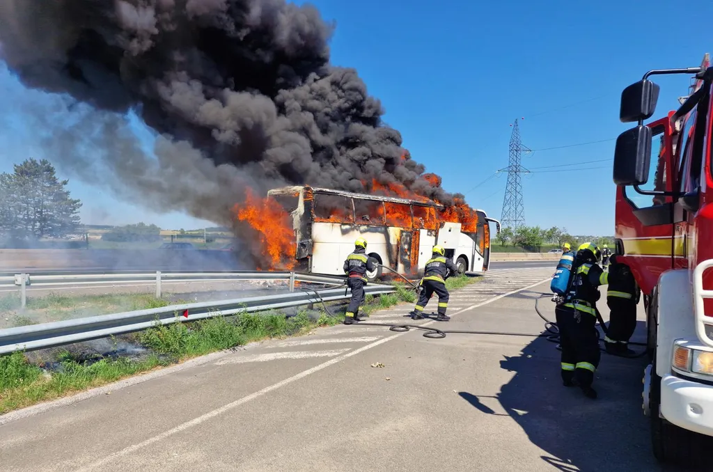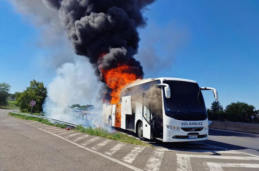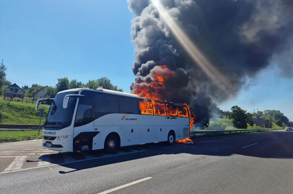 Sokkoló fotók érkeztek, utasokkal teli busz gyulladt ki az M3-on