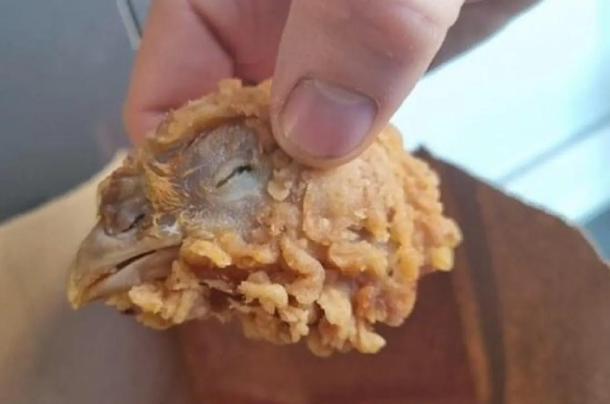 A londoni Twickenham városrészen egy nő szinte sokkot kapott, mikor a világ egyik legnagyobb gyorsétterem láncának egyik csirkeszárnyakkal teli kosarában egy egészben kirántott csirkefejet talált.