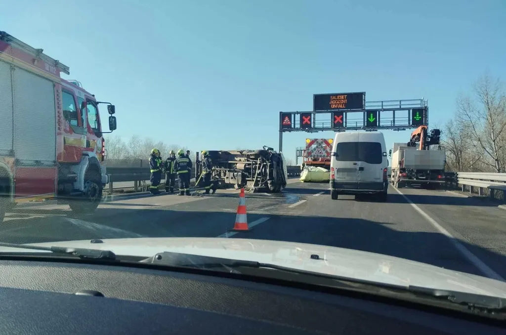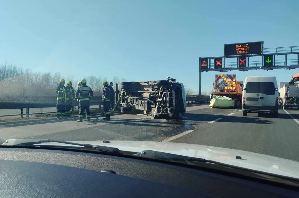 Óriási baleset történt csütörtökön az M0-s körgyűrűn, Káposztásmegyer és Dunakeszi térségében. A katasztrófavédelem tájékoztatása szerint az M2-es autóútra vezető letérő közelében egy kisteherautó belerohant a közútkezelő ütközésvédő kocsijába, majd az oldalára borult.