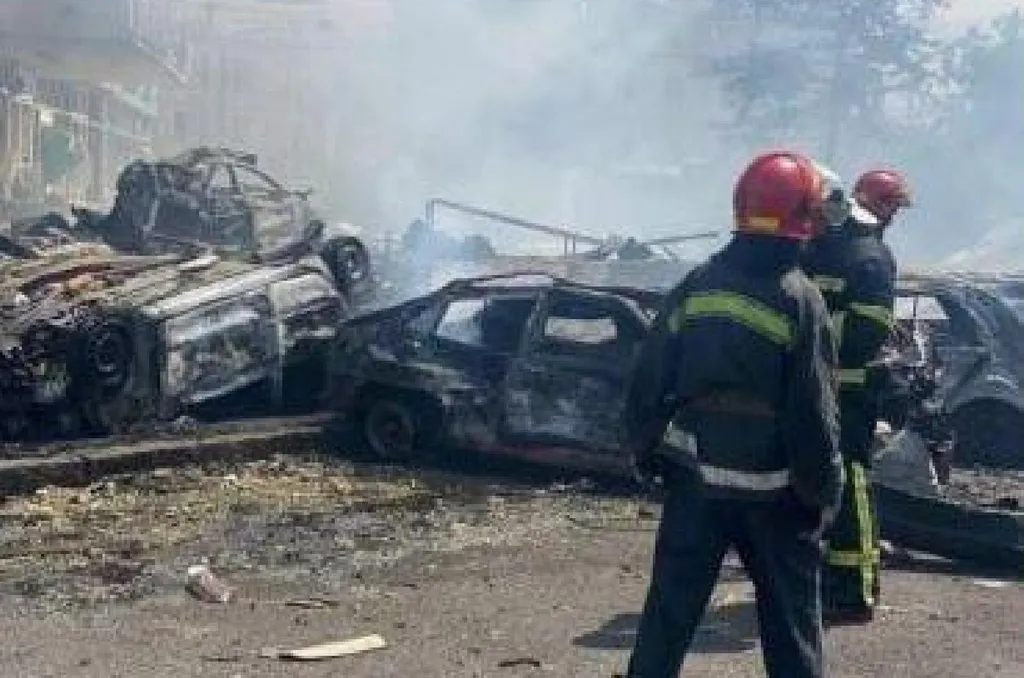 A Rendkívüli Helyzetek Állami Szolgálatának (DSZNSZ) közleménye szerint az egyik rakéta egy parkolóba csapódott. Összesen 25 jármű semmisült meg.