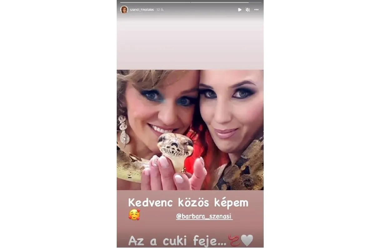 Szandi a sztoriban megmutatott egy képet, amin a nyaka köré tekeredett hatalmas kígyóval pózolt.