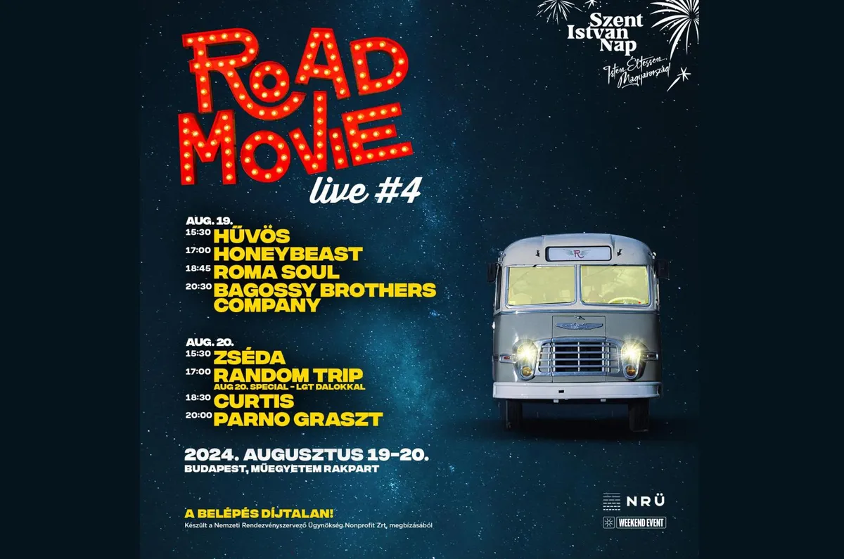 Egyedülálló zenei élményben lehet részük mindazoknak, akik a 2024-es Szent István Nap rendezvénysorozaton is a Road Movie Live színpad zenei kínálatát választják. Augusztus 19. és 20. között, a Műegyetem rakparton immár negyedik alkalommal találkozhatunk a legismertebb magyar zenészekkel, akik koncertrepertoárjukra olyan dalokat is felvettek, amelyekben egy-egy hazai régió, város vagy épület ihlette történetet mesélnek el.