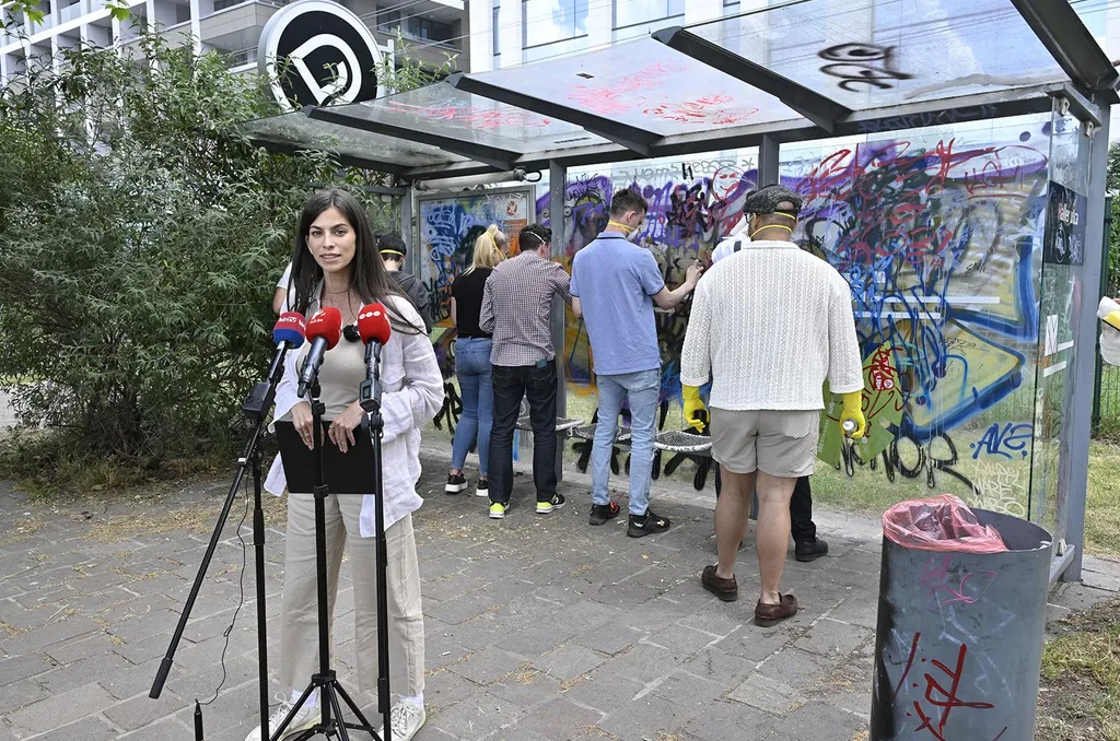 „Nem megengedhető, hogy a fővárosban áll a szemét, a kosz és egyre több fal van összefirkálva. Budapest a világ legszebb városa, az otthonunk, ki kell takarítani! Karácsony szerint Budapesten minden rendben van, ezért ő már nyugodtan elmehet kampányolni Gyurcsányékkal vidékre. Szerintem nincs rendben a főváros! Változást Budapesten!” – hangsúlyozta Szentkirályi Alexandra, miközben segítőivel takarítottak egy főváros fenntartásában lévő, graffitivel összefirkált, használaton kívüli megállót a Haller utcánál.