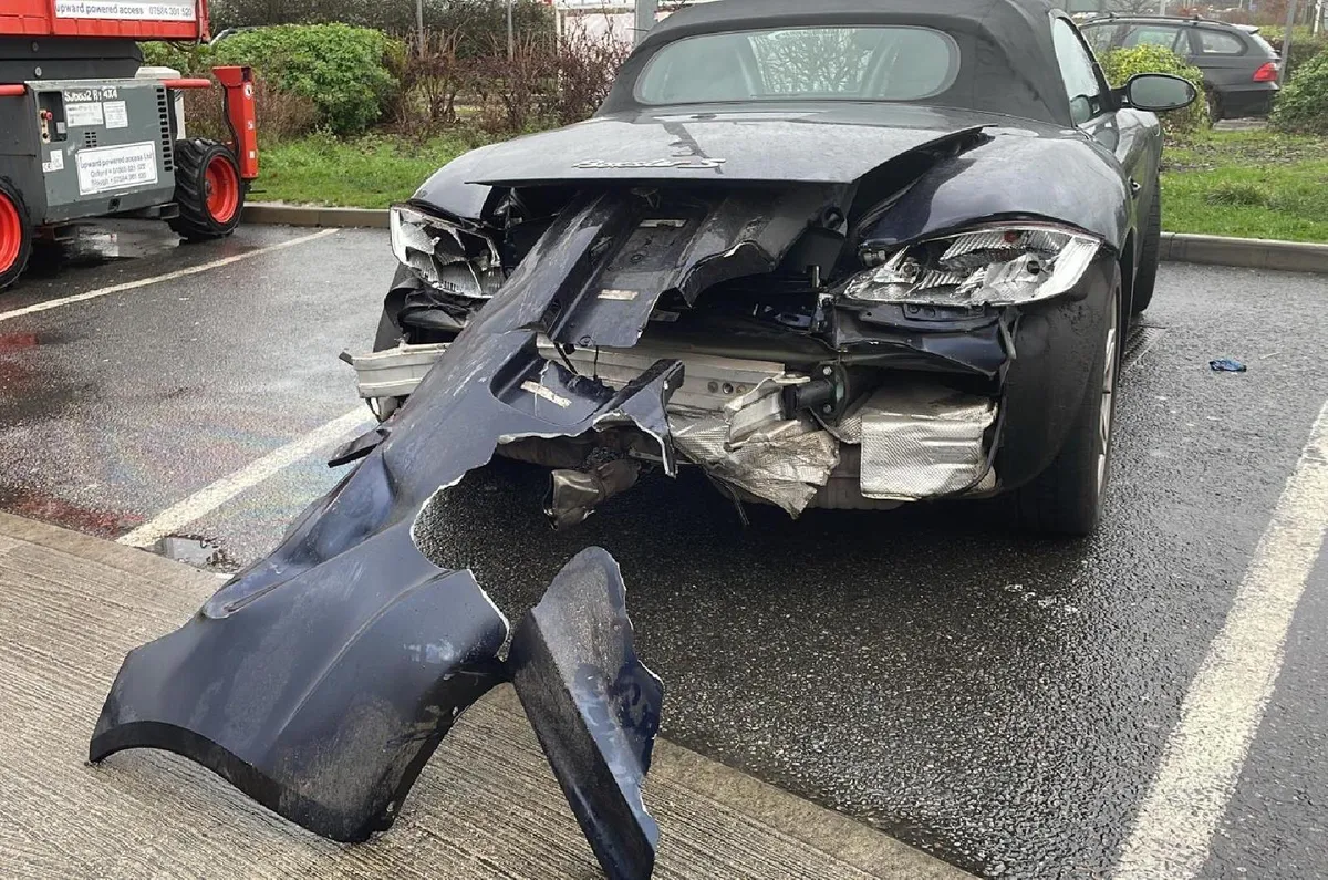 Az angliai Surrey rendőrsége egy luxusautót állított meg vasárnap az M25-ös autópályán, mert hiányzott a lökhárítója. A sofőr útja során valamikor karambolba keveredett és széttörte a huszonöt milliós kocsiját. Úgy gondolta azonban, hogy ez nem nagy probléma, a letört lökhárítót betuszkolta a csomagtartóba, és továbbhaladt a sztrádán.