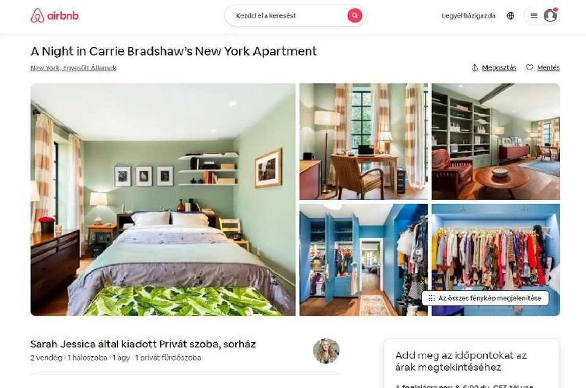 Az Airbnb foglalhatóvá teszi novemberben 2 éjszakára Carrie ikonikus, Upper East Side-i lakását, amelyben mindössze 23 dollárba, vagyis 7 ezer forintba kerül egy éjszaka annak a szerencsésnek, akinek sikerül lefoglalnia.