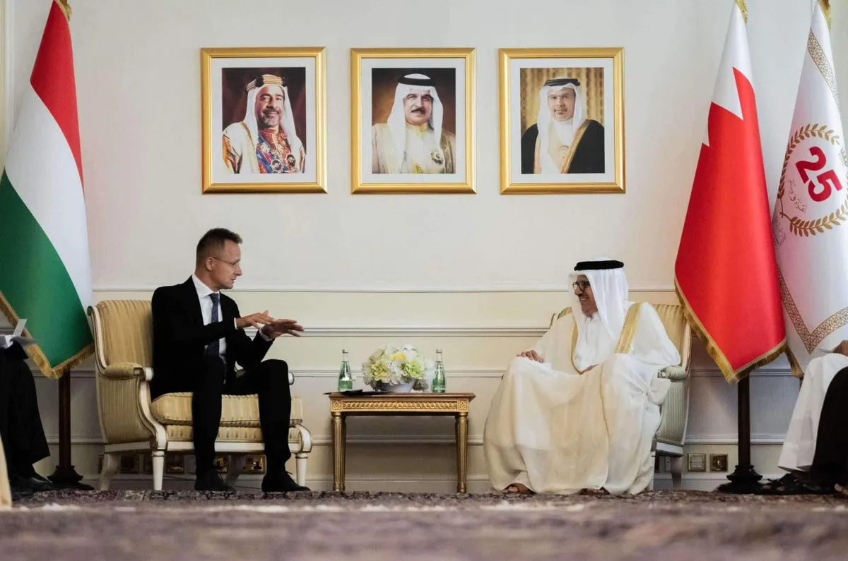 A Külgazdasági és Külügyminisztérium közleménye szerint a tárcavezető a bahreini kollégájával, Abdullatif bin Rasid al-Zajánival tartott közös sajtótájékoztatóján hangsúlyozta, hogy a világ jelenleg a veszélyek korát éli: mind Európában, mind a Közel-Keleten háború dúl.