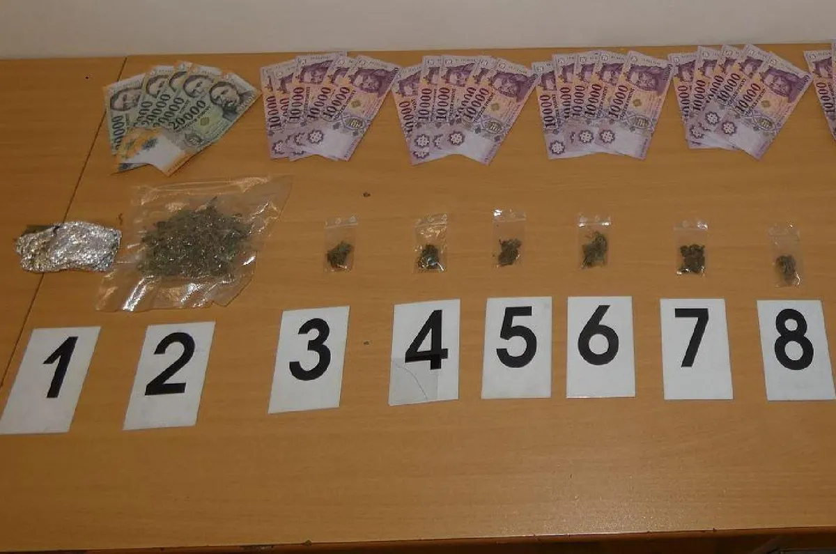 Míg zajlott a két előállított elszámoltatása, a nyomozók egy harmadik férfiért indultak, bérelt kocsival közlekedve állták útját, majd átültették a rendőrautóba. Tőle pénzt, lakásán további bankókat, kannabiszt és őrlőt foglaltak le.