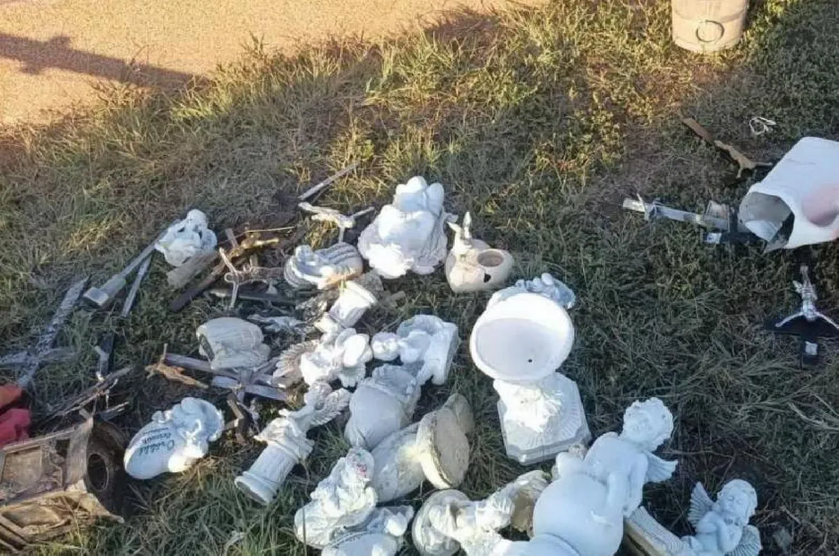 A temetőhöz kiérkező rendőröket ekkor már több sértett várta, akik felháborodottan sorolták a kárukat: márványszobrot, gipszből és porcelánból készült Jézus-, angyal- és galambszobrot döntött le vagy tulajdonított el a jogsértő.