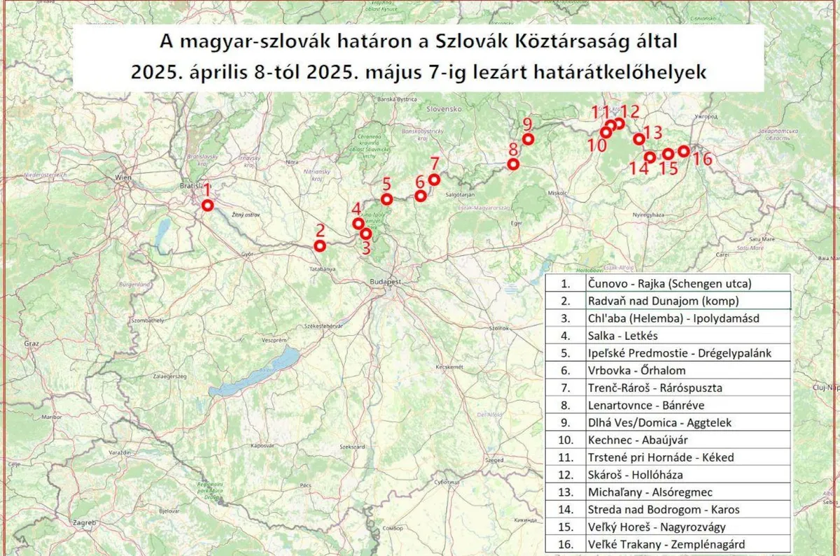 Az alábbi határátkelőhelyeken van felfüggesztve a személy- és járműforgalom: