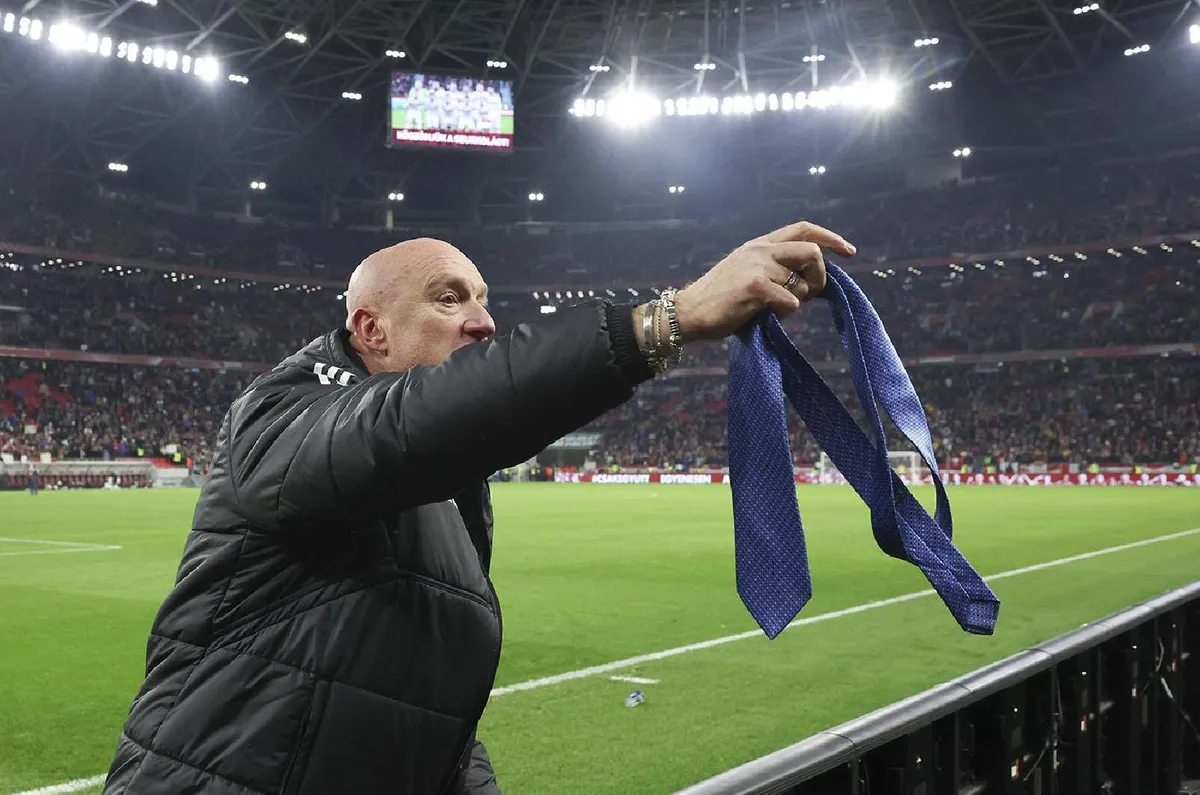 Marco Rossi szövetségi kapitány pedig örömében egy szurkolónak ajándékozta a nyakkendőjét.