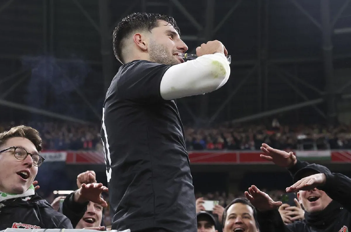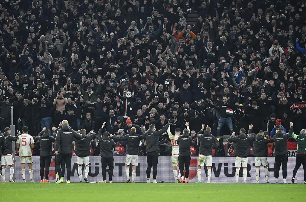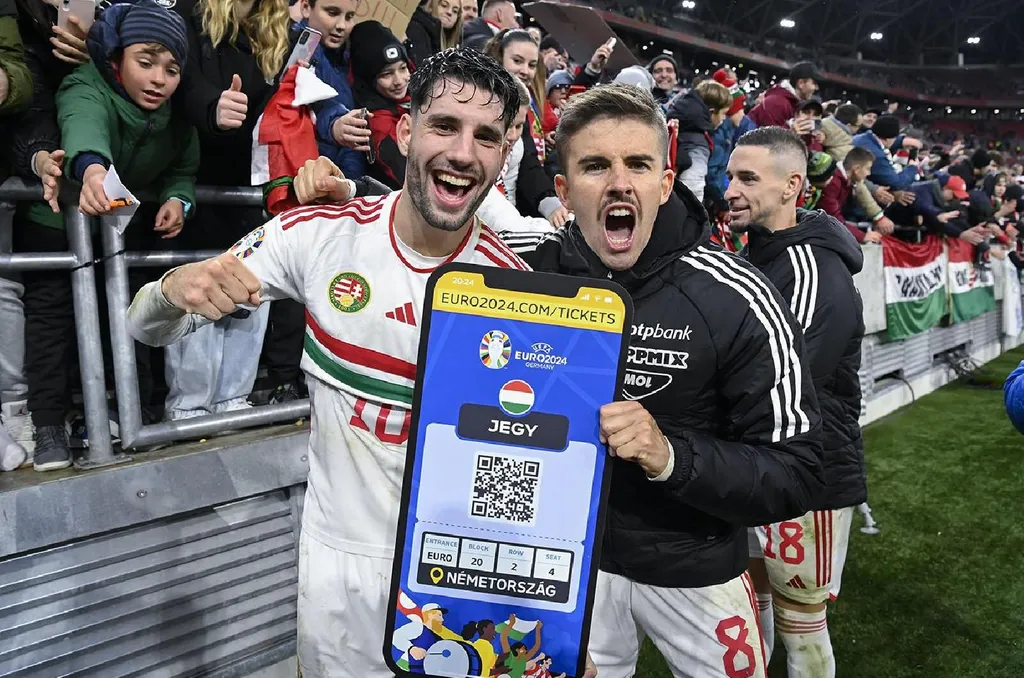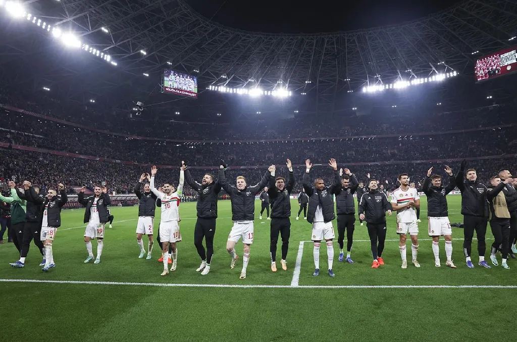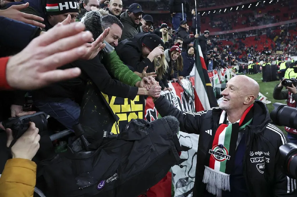 Az elképesztő siker után Szoboszlai Dominik, a válogatott csapatkapitánya a szurkolókhoz ment, akikkel egy pálinkát is lehúzott a győzelem örömére.