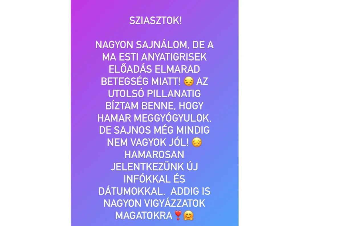 Szomorú hírt közölt rajongóival Király Linda Instagram oldalán. Az utolsó percig reménykedett, hogy színpadra fog tudni állni október 15-én, azonban az élet úgy hozta, hogy másképp lett.