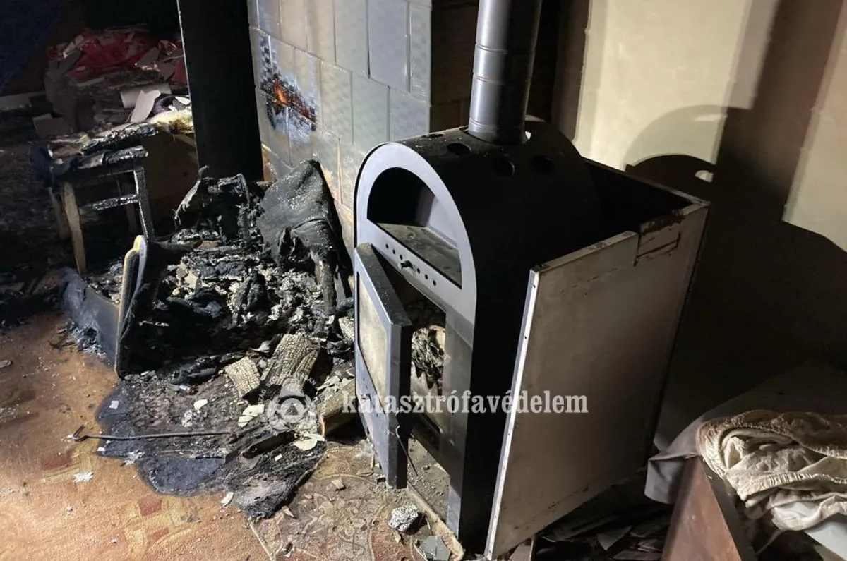 A nappaliban egy fatüzelésű mobil kandalló működött, közelében a tűzifával és egy fotellel. Mint kiderült, a szobában mindössze egy négyzetméteren, a fotel és egy függöny kapott lángra.