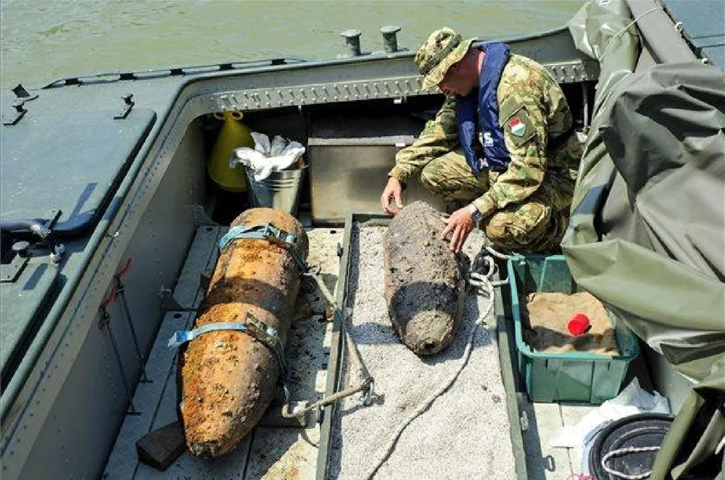 A tűzszerészek mindkét eszközt vízi úton szállítják el a helyszínről, majd a Magyar Honvédség központi gyűjtőhelyére viszik későbbi megsemmisítésre - tette hozzá.