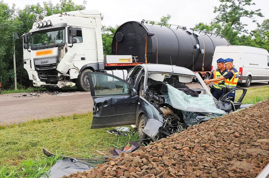 Tartálykocsiba csapódott egy kocsi Tiszatenyőnél, sokkoló fotók érkeztek a helyszínről