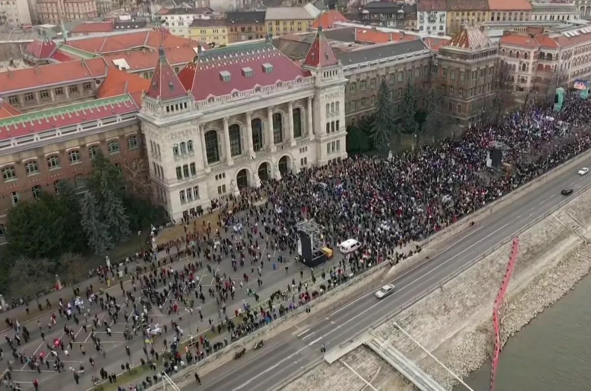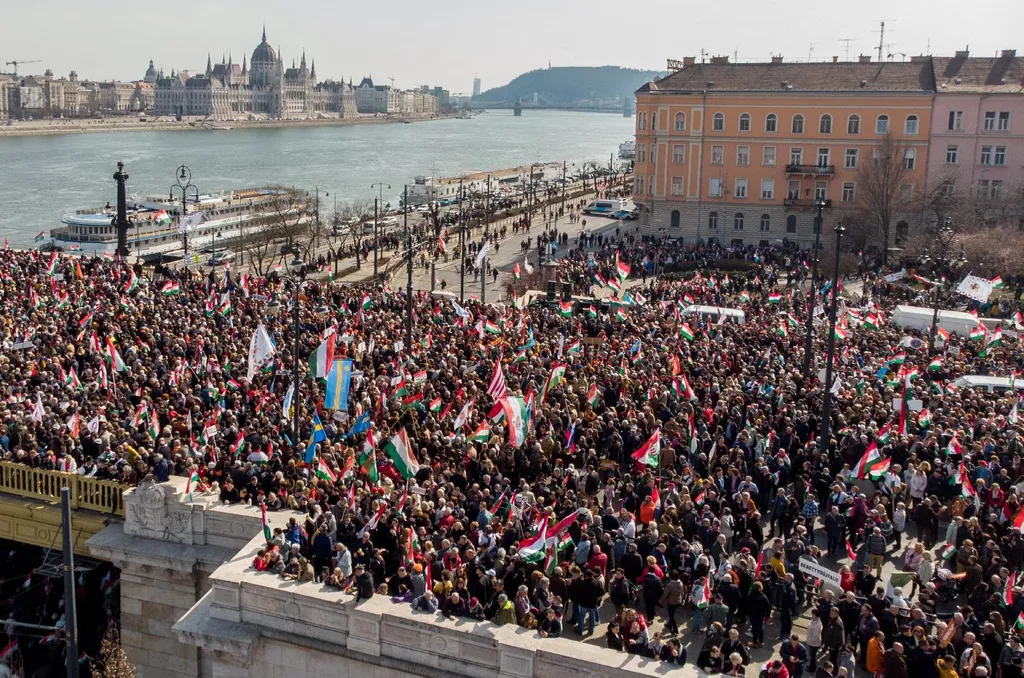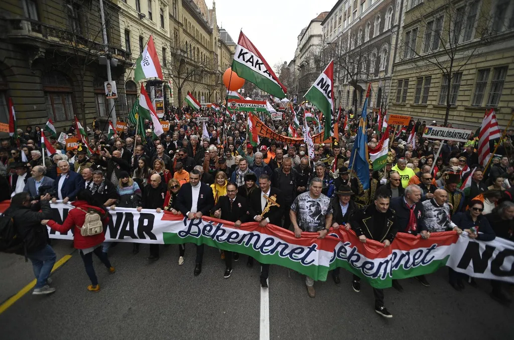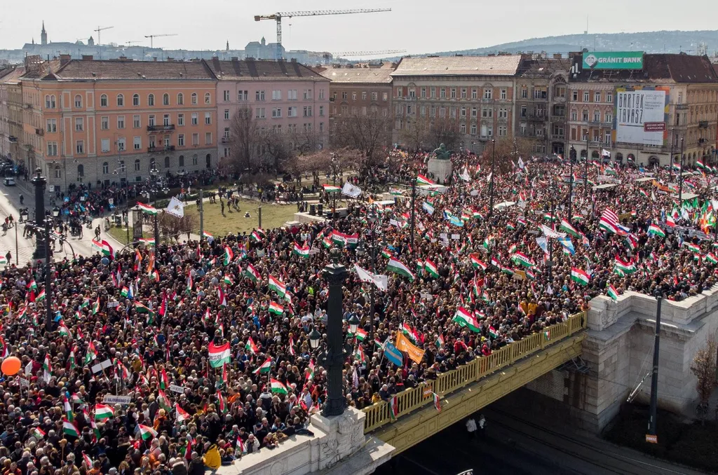 Az ellenzéki összefogás március 15-i megemlékezését a Műegyetem rakparton tartotta. A résztvevők a Szabadság hídról vonultak a helyszínre, ahol a szervezők közlése szerint beszédet mond majd Iványi Gábor lelkész, Donáth Anna, a Momentum elnöke, Karácsony Gergely főpolgármester, a Párbeszéd társelnöke, Jakab Péter, a Jobbik elnöke, Schmuck Erzsébet, az LMP társelnöke, Tóth Bertalan, az MSZP társelnöke, Dobrev Klára, a DK európai parlamenti képviselője, Donald Tusk, az Európai Néppárt lengyel elnöke és Márki-Zay Péter, hat ellenzéki párt közös miniszterelnök-jelöltje.