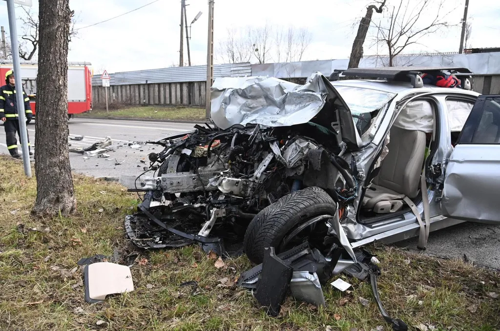 A MTI helyszínen készült fotóján az látható, hogy az autó eleje teljesen összeroncsolódott, és összetört a busz vezetőfülkéje is.