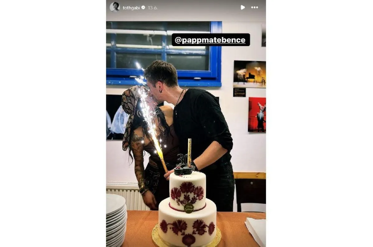 Gabi hétvégén egy hatalmas meglepetésbulit is szervezett Máténak, aki idén lett 30 éves. Az énekesnő a különleges partiról most több fotót és videót is megosztott 24 óráig elérhető Instagram-sztorijában, amelyek egyikén éppen csókot lop kedvesétől.