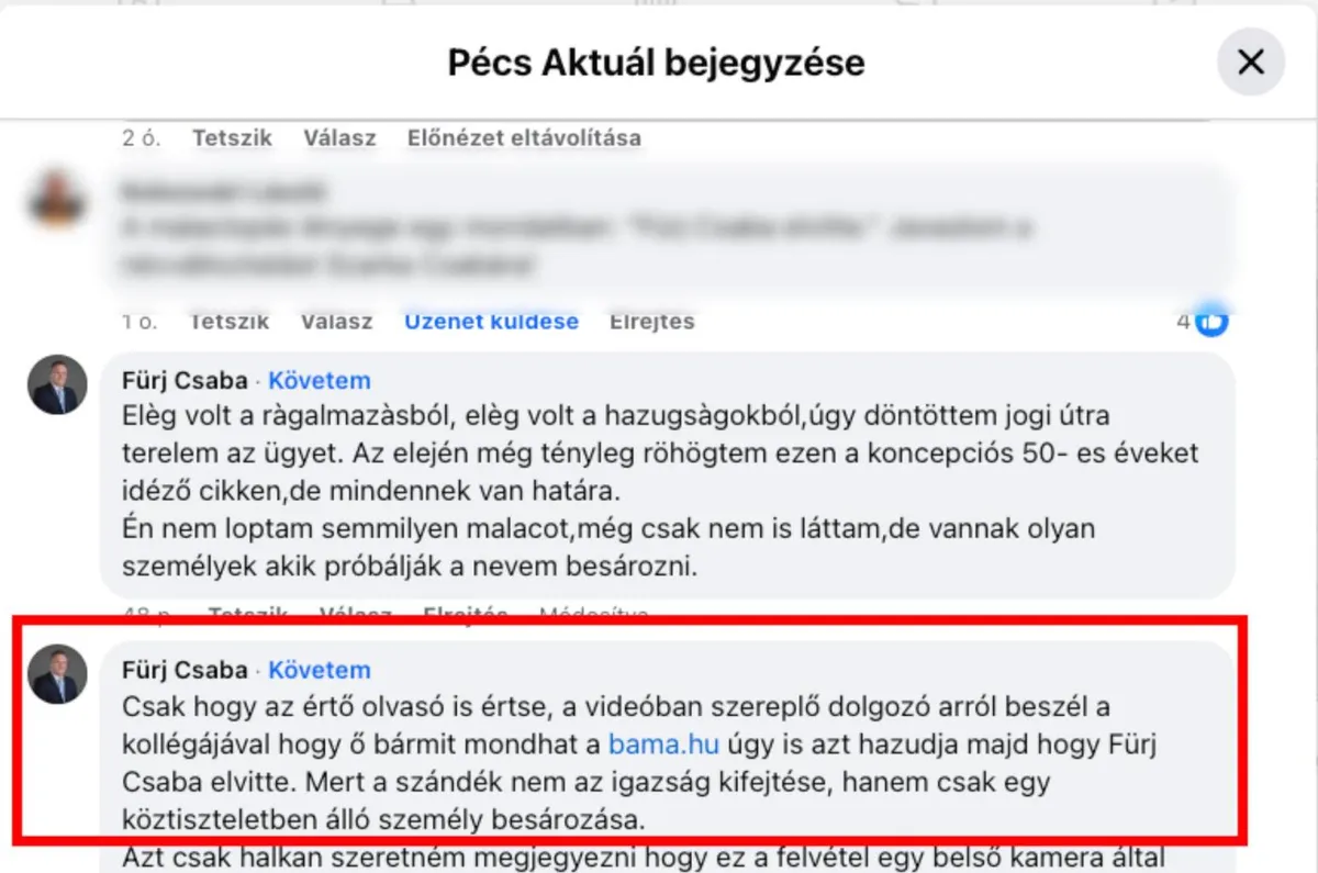 Fürj Csaba a Pécs Aktuál Facebook-oldalán is kommentelt a témában. Ott azt írta a videóhoz: