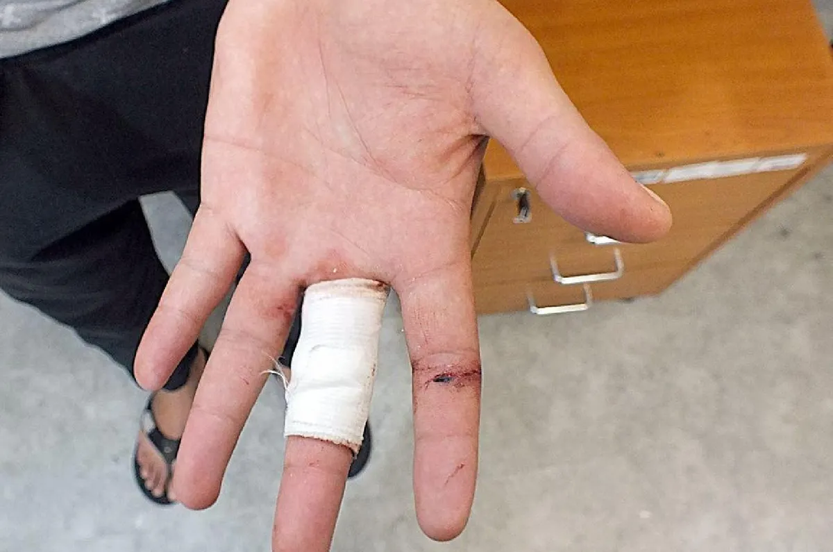 Ez vérző ujjú férfi kért 2020. szeptember 3-án késő délután az Örkényi Rendőrörsre bekopogva segítséget. A rendőrök mentőt hívtak, mint kiderült egy másik egység akkor már úton volt egy helyi címre, ahonnan segélyhívás érkezett.