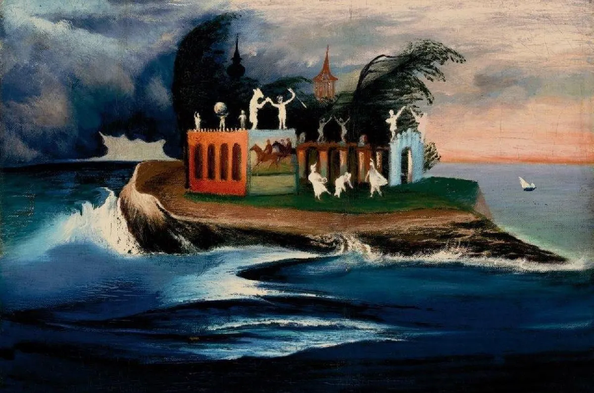 Az 1903-ban készült Titokzatos sziget Csontváry egyik legrejtélyesebb műve, amelynek jelentését a mai napig nem sikerült megfejteniük a művészettörténészeknek. A kép a magyar aukciók történetének legmagasabb kikiáltási áráról, 160 millió forintról indulva érte el az új magyar csúcsot. A Titokzatos sziget című képen álomfigurák idézik fel a múltat és a jövőt egy képzeletbeli szigeten. A csöppnyi földdarab és a külvilág közti átjárás lehetőségére apró vitorlás motívuma utal. A szimbólumokban gazdag műalkotást intenzív, meleg színek és ragyogó fényhatás jellemzi.