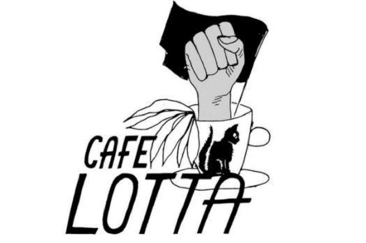 Már a kávézó szórólapjain is ott van a szélsőbaloldali szervezet jelképe, az ANTIFA lényegét kifejező, erőszakra utaló ökölbe szorított kéz.