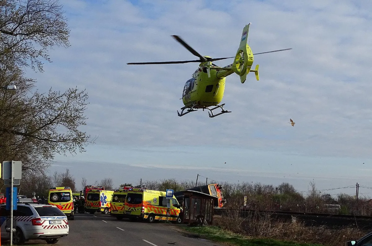 Győrfi Pál, az Országos Mentőszolgálat szóvivője az MTI-nek elmondta: a baleset helyszínére tíz mentőautó és egy mentőhelikopter érkezett.