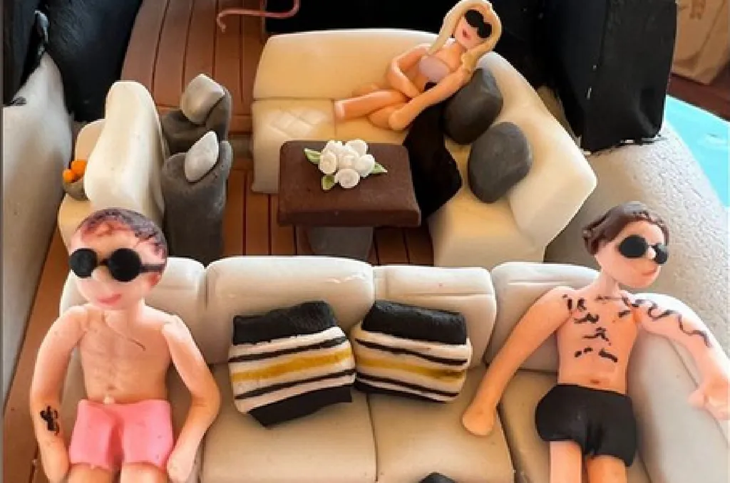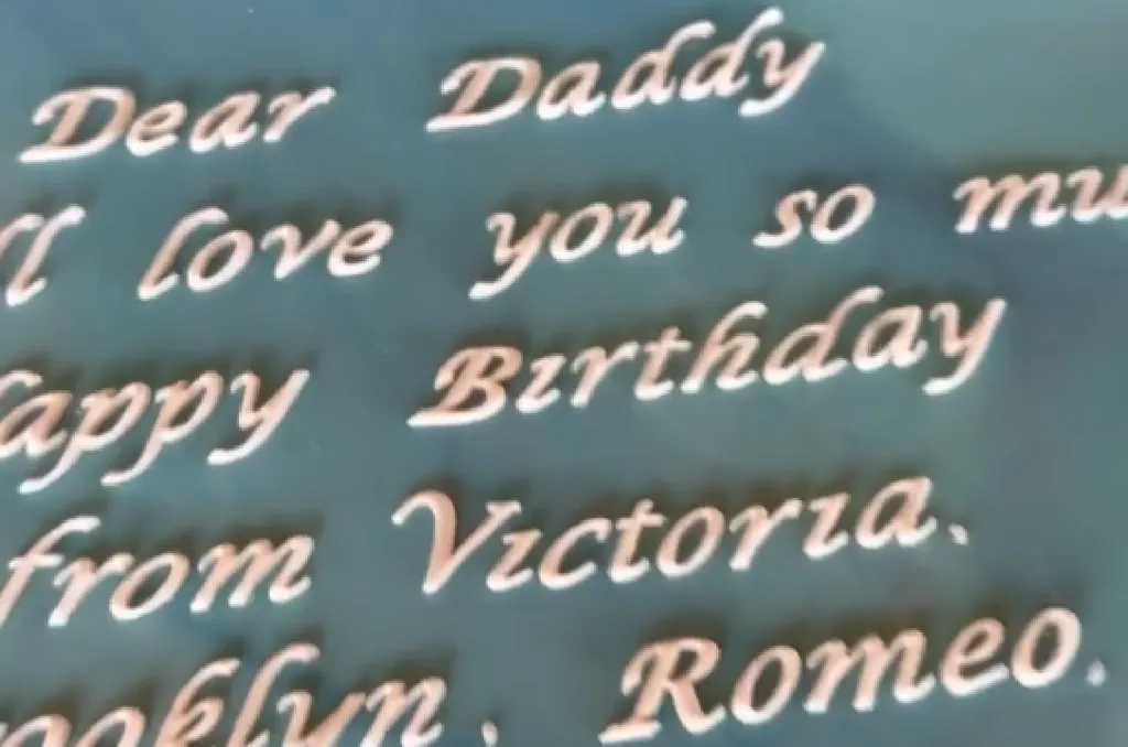 A 48 éves üzletasszony Instagram sztori formájában férje ötletes tortáját is bemutatta, mely jachtjukról lett mintázva, az azon szereplő marcipán-figurák pedig róluk. Annyira élethűre sikerültek, hogy még David és Brooklyn tetoválásai is ott tündökölnek. A cukormázba egy üzenet volt írva, amely így szólt: "Kedves Apu, nagyon szeretünk. Boldog születésnapot kívánunk: Victoria, Brooklyn, Romeo, Cruz és Harper" - írta meg a Mirror.