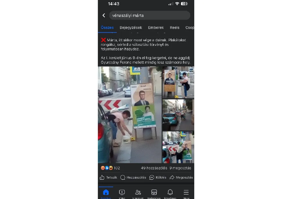 Egy egész fotósorozat bizonyítja, hogy V. Naszályi Márta, aki pillanatnyilag Budapesten az I. kerület polgármestere, kiszállva egy autóból saját kezűleg ráragasztotta a magáét fideszes ellenfele Böröcz László plakátjára – írja a Ripost.