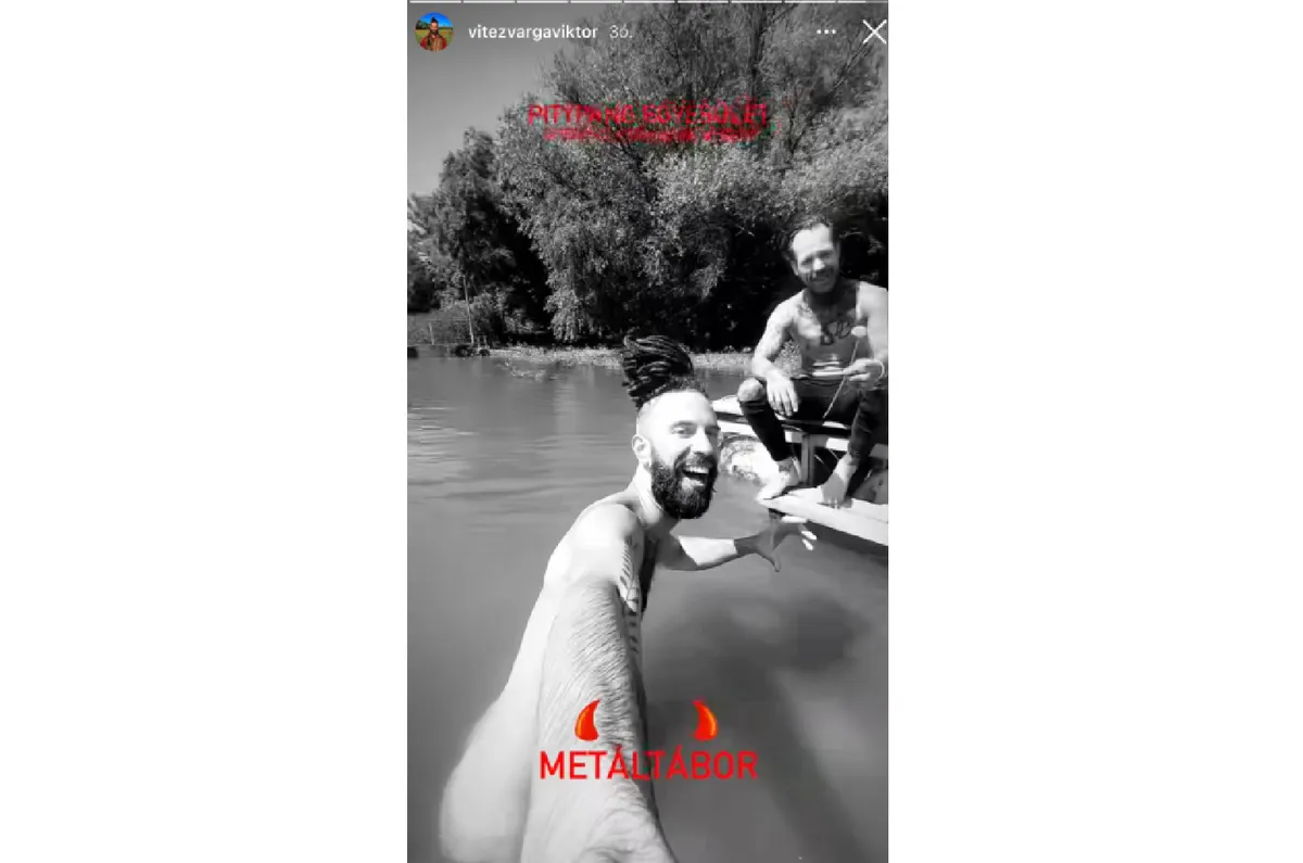 Az énekes vasárnap egy hasonló jellegű videót tett ki 24 óráig elérhető Instagram-sztorijába, amelyen látható, hogy zenésztársaival egy tó partján élvezi a gyönyörű tavaszi napsütést. Viktor a vízbe is bevetette magát és a felvételen látni lehet, hogy gatya nélkül ment csobbanni, hiszen feneke kivillant a vízből.