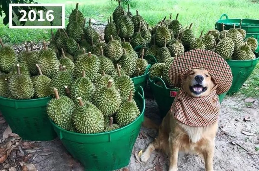 Jubjib, a thaiföldi golden retriever kutya 2014 óta besegít gazdáinak a durian gyümölcs szüretelésében és azóta is hasznos tagja a csapatnak - írja a Mymodernmet. A család saját vállalkozás keretein belül friss, saját márkás termékeket állít elő, például sült duriánt.