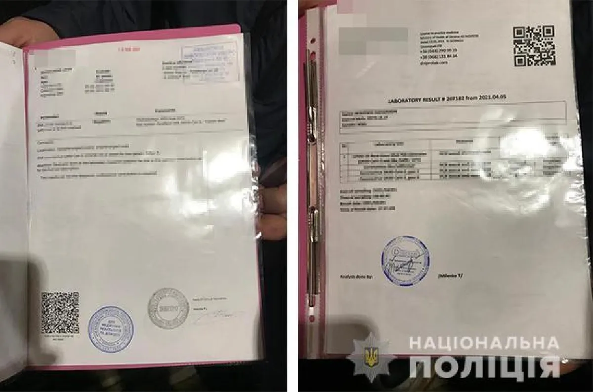 Az eset kelet ukrajnai Krivij Rih-ven történt. A rendőrséghez március folyamán több bejelentés érkezett, hogy egyes csalók ismert laboratóriumok űrlapjait felhasználva hamis igazolásokat állítanak ki. A nyomozás során kiderült, hogy a hamis dokumentumokat egy 41 éves helyi nő árulja. A nő több hirdetést is kiragasztott városszerte, hogy teszt nélkül negatív koronavírus-teszteredményekről állít ki igazolást, így a hatóságoknak nem volt nehéz dolga.