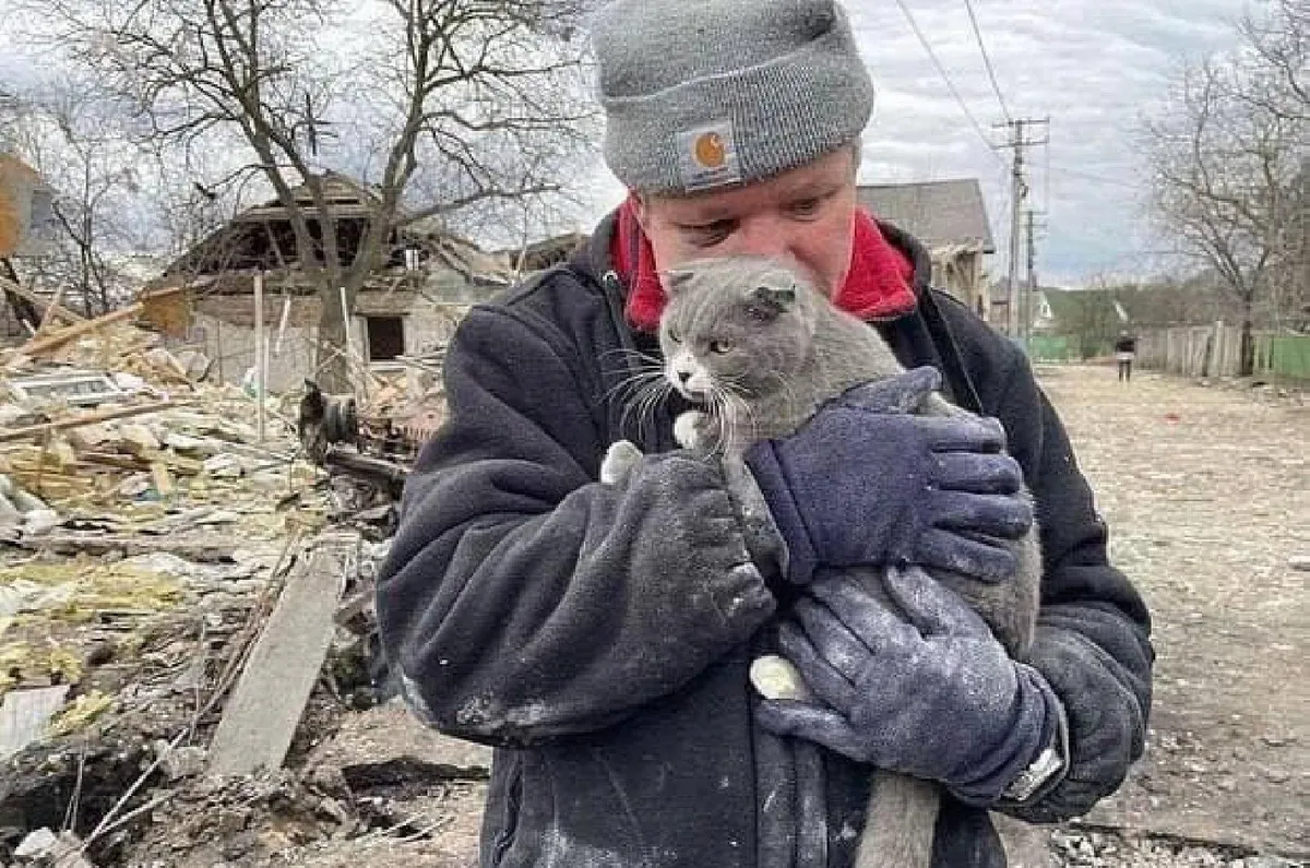 Az információk szerint a bombázásban az összetört férfi elvesztette lányát, feleségét, anyósát és két vejét is. A szívfacsaró képen az egyetlen túlélővel családjából, a macskájával látható.