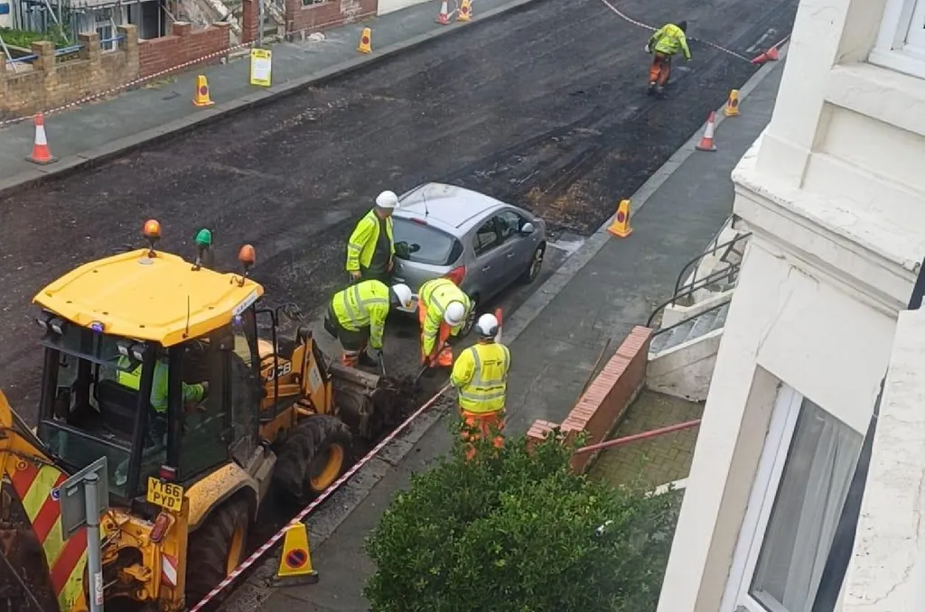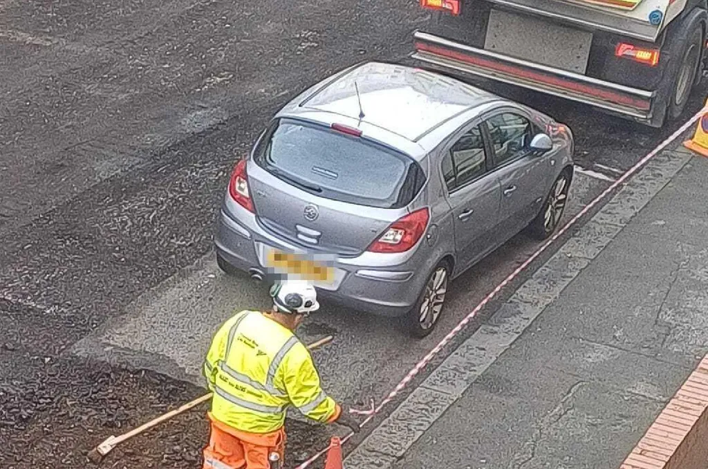 A Queen Street-en ugyanis útfelmarást és betonozást végeztek a közút szakemberei, azonban munka közben egy tilosban parkoló autóba botlottak.