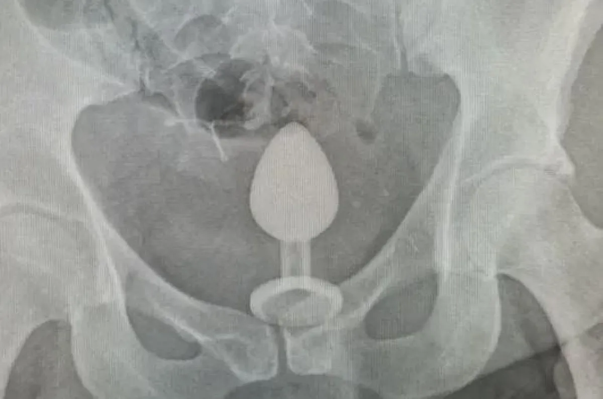 Így égő arccal, szégyenkezve ment be párjával a legközelebbi kórházba, ahol egy röntgenfelvétellel megállapították az eszköz helyzetét.