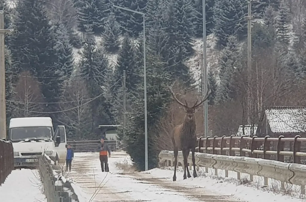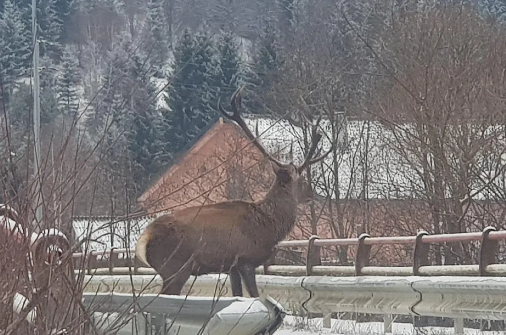 A hóval együtt a „csodaszarvas" is megérkezett, lefotózták, ahogy az utcán sétál az óriás
