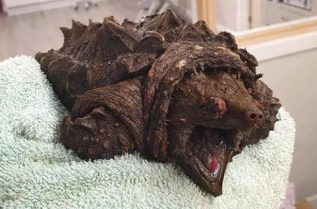 Le is törheti a kisgyerekek karját. Ez egy kisállatkereskedésből származó egyed, amelyet kidobtak, mert a tulajdonosa nem tudott vigyázni rá. Különböző ügynökségeket hívtam fel, akik nem segítettek. Mindenki mocsári teknősnek hitte, de nem az. Egy elfajzott aligátorteknős lehet
