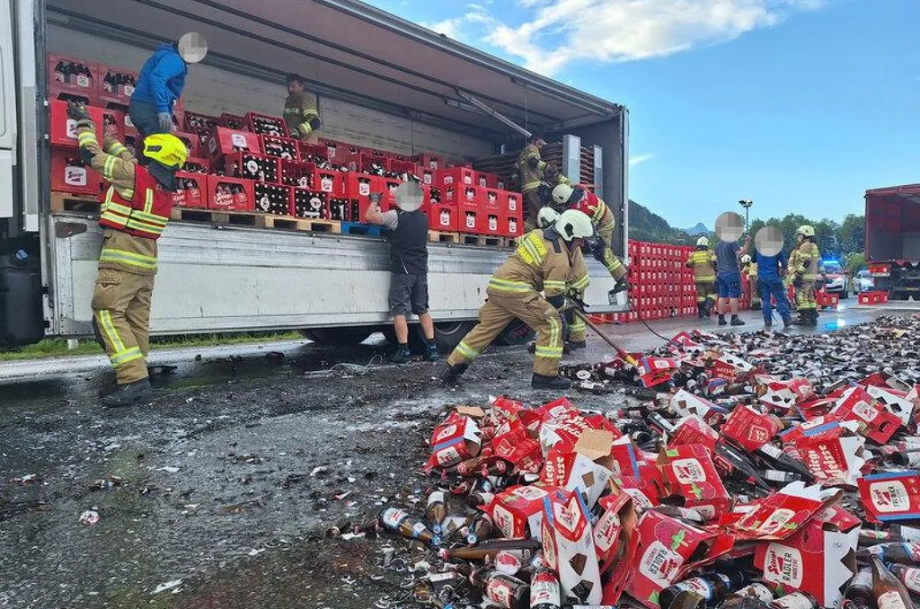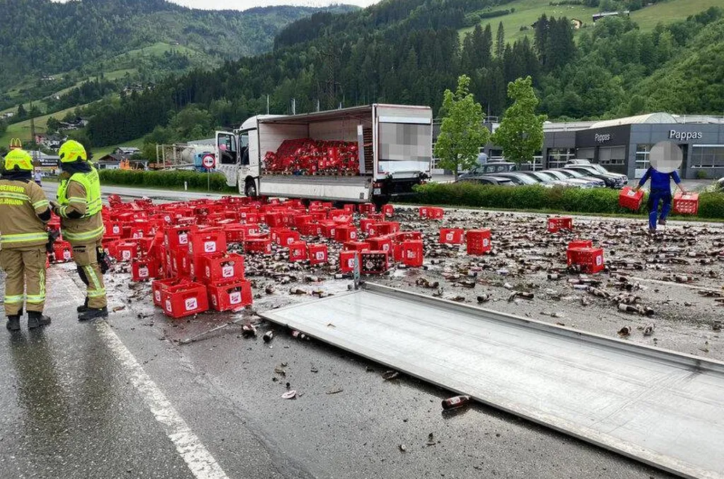 Felkavaró látvány tárulhatott a sörimadók szeme elé hétfőn este Ausztria nyugati részén, a Salzburg tartománybeli Sankt Johann im Pongau közelében. Egy sörrel megrakott teherautó rakományának nagy része ugyanis kiborult az útra, miután a raktér bal oldalán meghibásodhatott egy zár – közölte a Kronen Zeitung.